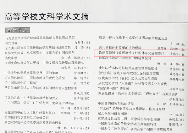 日前,《高等学校文科学术文摘》以“学术卡片”形式,对《bwin·必赢(中国区)官方网站-officialswebsi》刊载论文《论能源领域行政规范性文件的体系化清理修订》进行转载。
