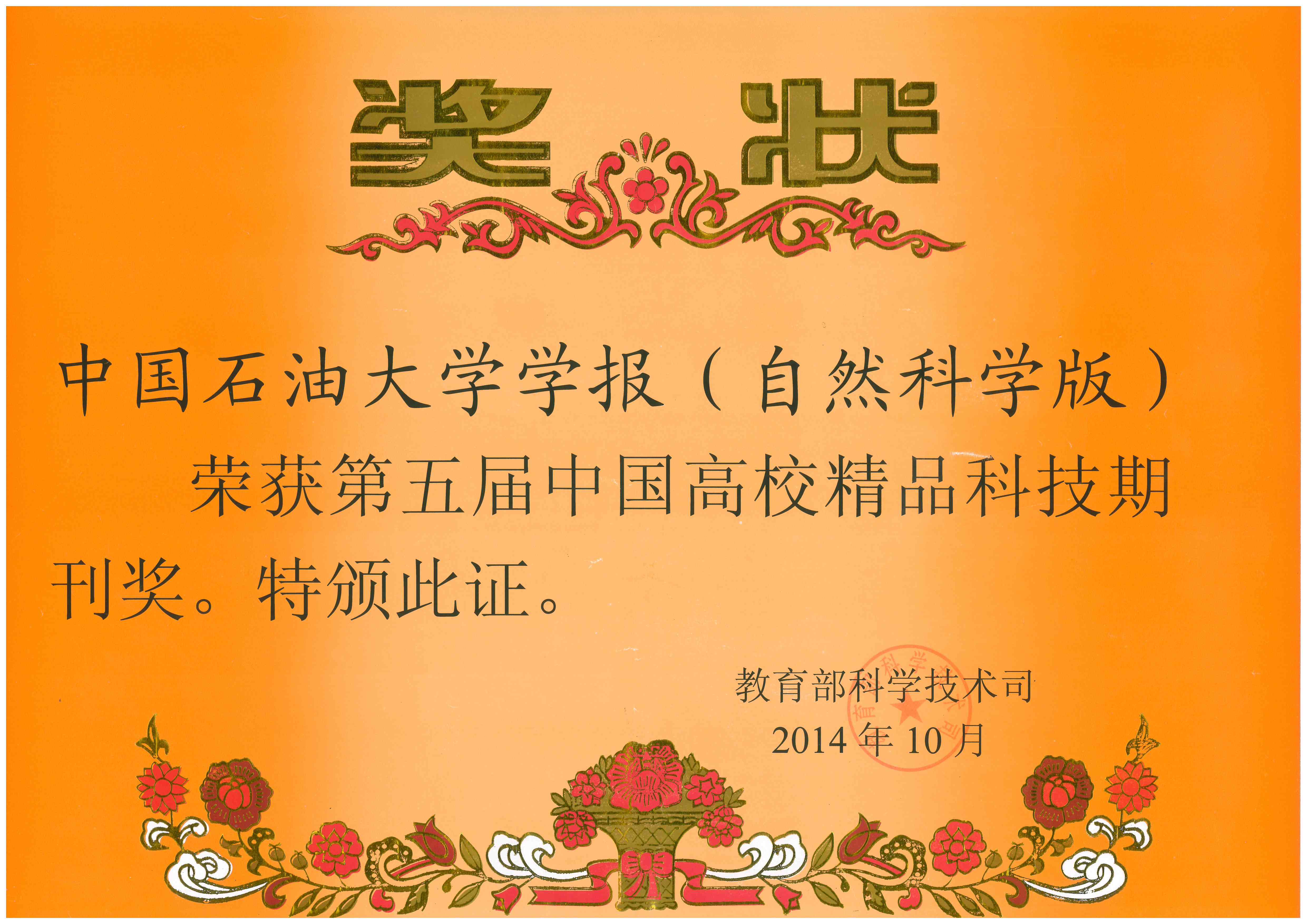 第五届中国高校精品科技期刊奖