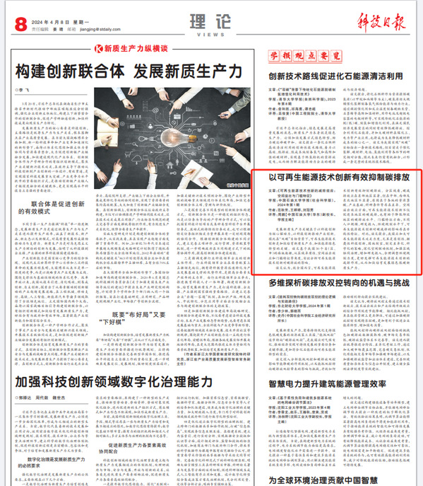 科技日报:学报观点要览|以可再生能源技术创新有效抑制碳排放