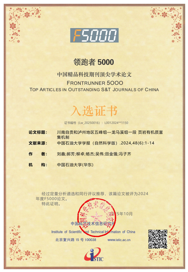 近日,中国科学技术信息研究所公布2025年度“领跑者5000(F5000)——中国精品科技期刊顶尖学术论文”入选名单。《bwin·必赢(中国区)官方网站-officialswebsi学报(自然科学版)》有2篇论文入选,分别为刘鑫、郝芳、柳卓等撰写的《川南自贡和泸州地区五峰组—龙马溪组一段页岩有机质富集机制》,康凤新、隋海波、李常锁等撰写的《岩溶热储古岩溶发育机制与地热水富集模式》。
